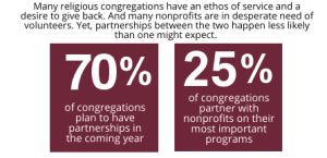 As scholars with the Little Rock Congregations Study at the University of Arkansas at Little Rock, we are studying when and how nonprofits and congregations might partner to provide service to the community. Most religious traditions have an ethos of service and encourage their members to give back through volunteering. Most nonprofits have limited budgets and are in desperate need of volunteers. It would seem that partnerships between nonprofits and congregations would be a natural fit. Yet, when we surveyed 112 congregation leaders in the fall of 2018, we found that, although 70% of congregations plan to have partnerships in the coming year, only 25% of congregations partnered with nonprofits on their most important service project.