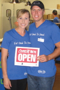 Following the new company’s motto, “Eat Good, Do Good,” owners Austin and Ashton Samuelson donate the funds necessary to purchase one meal for every meal they sell to the charity Feed My Starving Children.