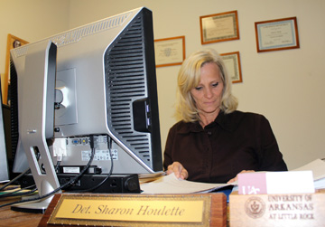 NOTE: This is the second in a series profiling officers with the University of Arkansas at Little Rock’s Department of Public Safety. It might seem inevitable that a trained law enforcement officer would have spent time playing cops and robbers as a child, but for Detective Sharon Houlette of UALR’s Department of Public Safety, law enforcement was the furthest thing from her mind when she first came to campus.