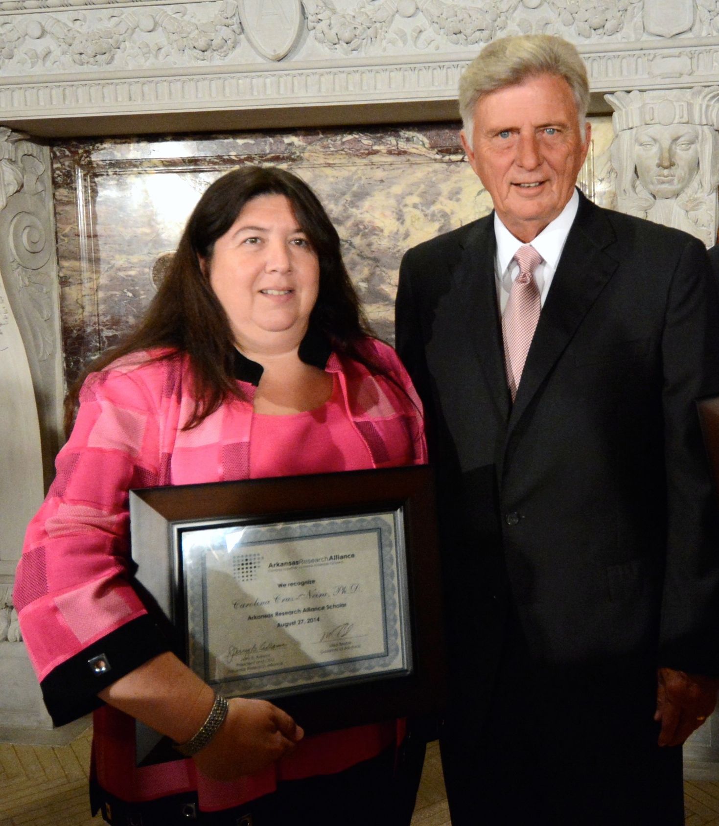 Dr. Cruz after receiving her plaque from Arkansas Gov. Mike Beebe at the State Capitol Aug. 27