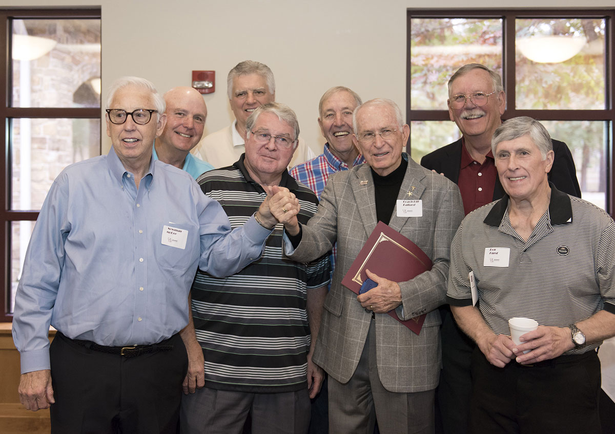 Coach Ballard shares a moment with his former basketball players from the 1960s