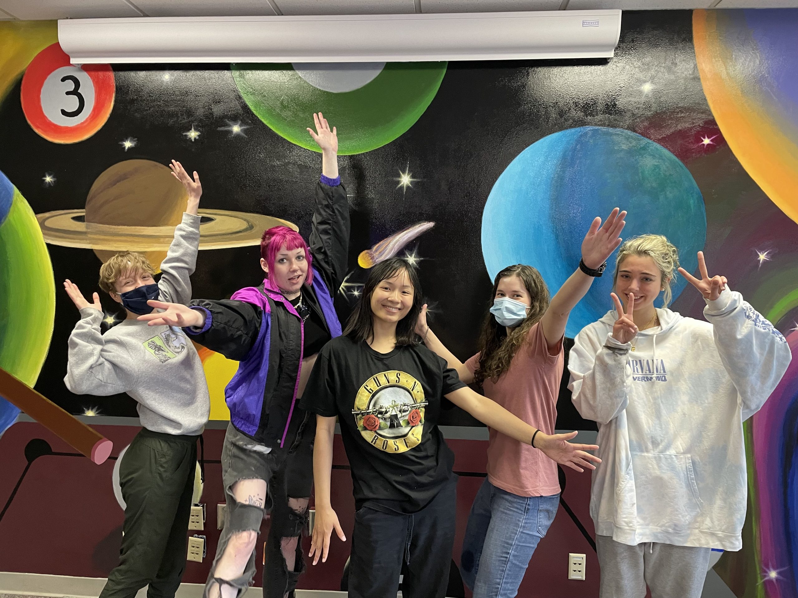 Although each student brought their own uniqueness to the project, class instructor Krista Schoening ultimately decided that Kristal Mclennan’s design, in which she incorporated the gaming lounge’s pool table balls into planets, was right for the space.