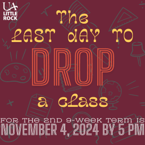 Drop That 2nd 9-Week Class Before 5 PM Monday! November 1, 2024 The deadline to drop a course for the 2nd 9-week term is Monday at 5 pm! After this date, if you wish to drop a course, you can only withdraw from all your classes for the semester. View more stories in Dates, Event, News Tags: