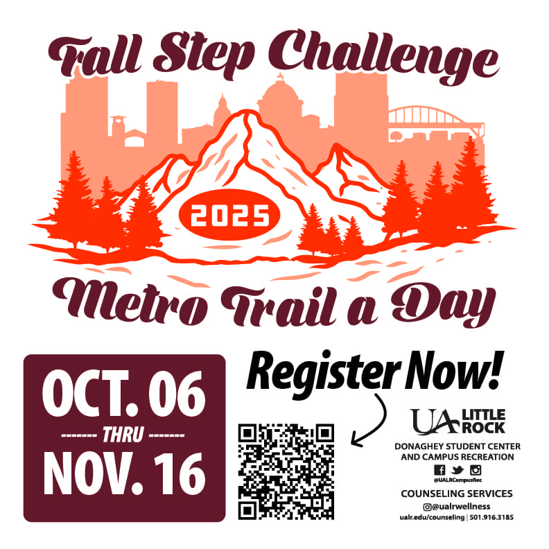 It’s time for Fit/Well’s walking challenge, Step Into Fall – A Metro Trail A Day. Let’s enjoy the fall weather together by stepping into fall with the 6-week “Metro Trail A Day”! We’ll work activity into our days by (Virtually) ‘walking’ a sample of trails in the Greater Little Rock, North Little Rock, or Conway Metropolitan Area every day, to help us maintain or improve our cardiovascular health. Registration is open now, and the program will run from October 6 – November 16, 2025.