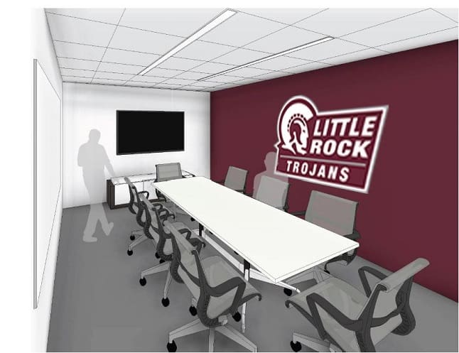 Formerly known as the Trojan Fieldhouse, the Donaghey Athletic Center was one of the original athletic facilities constructed in 1969. It is located inside the Donaghey Student Center, and the nearly 15,000-square-foot building houses coaching offices and meeting space, locker room and training facilities, and support services for the Trojan swimming and diving, soccer, men’s and women’s golf, and men’s and women’s track and field/cross country programs. It also houses the Aquatic Center, the home pool for the Trojan swimming and diving team. The renovations provided Trojan student-athletes with an updated weight room and athletic training area as well as the addition of a nutrition center. It also provided a complete remodeling of coaching and administrative offices as well as locker rooms and common areas.
