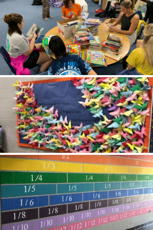 On the other side of the media center, Bowen students worked in groups to create colorful origami butterflies that were then used to decorate an encouraging bulletin board in Washington’s main entry hall. The message “Until you spread your wings you’ll have no idea how far you can fly” welcomed Washington’s students back to school.
