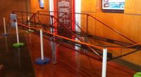 The bridge was built by UALR students who participated in the 2012 Student Steel Bridge Competition as a guest team in the contest sponsored by the American Society of Civil Engineers and the American Institute of Steel Construction.