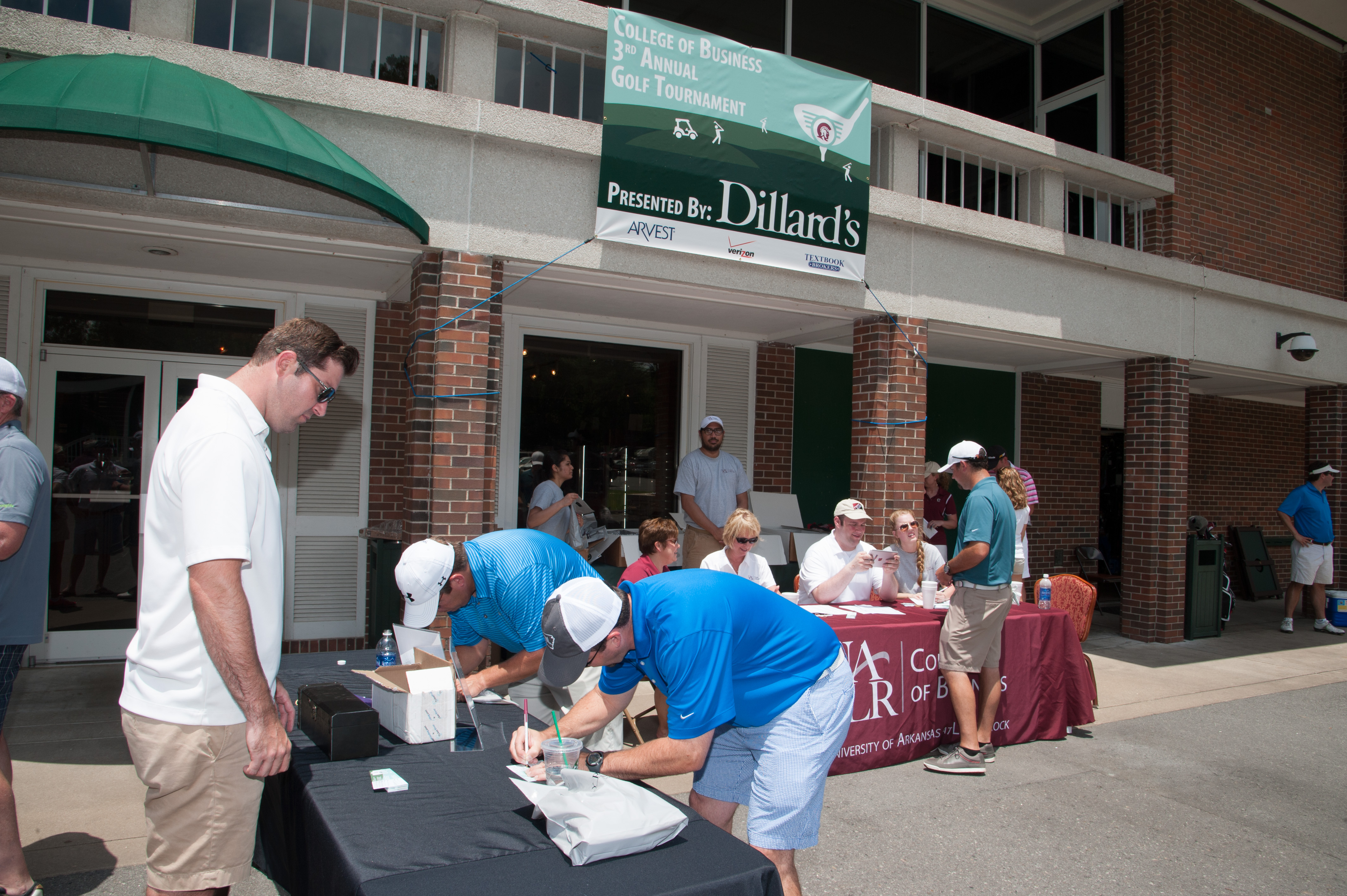 The UALR College of Business broke records during its third annual golf tournament held at the Pleasant Valley Country Club in Little Rock on June 16. The fundraising event grossed $91,000–nearly double last year’s amount–in a four-person scramble that will help endow College of Business student programs. The tournament was presented by Dillard’s Inc. Three supporting sponsors–Verizon, Arvest Bank, and Textbook Brokers Inc.–also provided funding for the tournament. “We attribute this year’s success to the support of our sponsors, amazing committee, and enthusiastic participants,” said Andrea Angel, director of development for the UALR College of Business. Angel said that, at 180 participants, another record was set in the number of players this year. A silent auction also helped net another $5,000, according to Angel. Players enjoyed breakfast, lunch, and dinner for the all-day event. “We really tried to enhance the experience, and we hope everyone had a good time.” Each year, the fundraiser helps support business programs that include professional development workshops, placement activities, and student competitions such as the Donald W. Reynolds Governor’s Cup business plan competition. “To have so many sponsors and participants this year is a testament to the growth in support of our programs,” said Dr. Jane Wayland, UALR’s Stephen Harrow Smith Dean of Business. “Each of these successful events means our program will better serve our students by expanding the supporting activities available,” she said. Next year’s golf tournament is already set for Monday, June 15, at the Pleasant Valley Country Club.View more stories in News