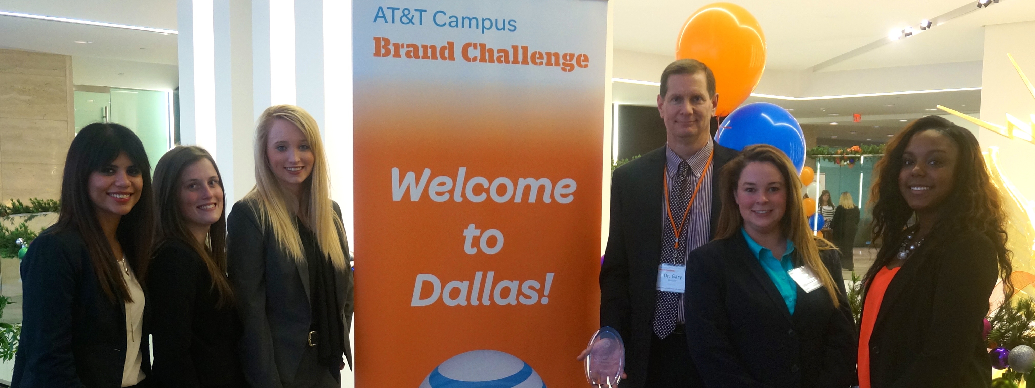 The team, which includes Vivien Fechner, Sara Massana, Brandi Glover, Leah Lauderdale, and Jamie Middleton, won the annual AT&T Campus Brand Challenge in Dallas on Dec. 16.