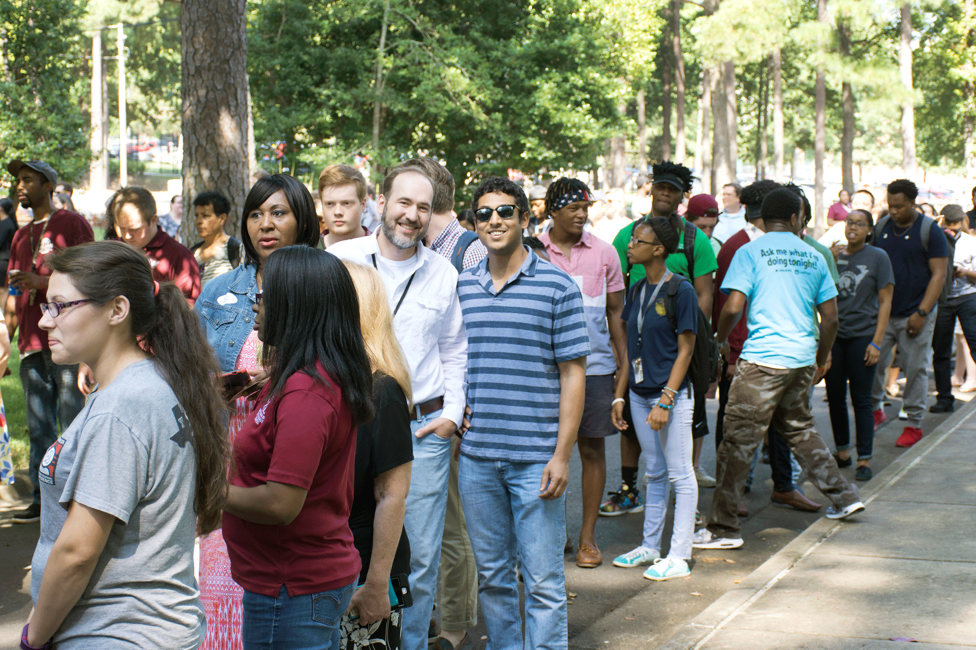 People line up to get a free meal during BBQ at Bailey Sept. 14 at Bailey Alumni and Friends Center.