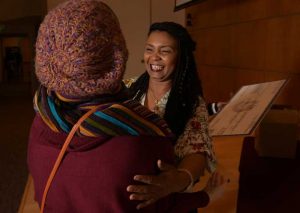Pamala Stanley is congratulated after winning the Staff Achievement Award for Personal Growth. Photo by Ben Krain.