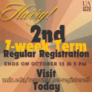 2nd 7-week Term Registration Ends on Sunday at 5 p.m.! Get registered today at ualr.edu/records/get-registered!