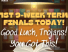 1st 9-week term finals are happening today! Make sure to wish your fellow Trojans luck!