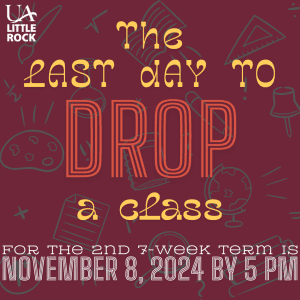 Be sure to drop that 2nd 7-week term course before the deadline at 5 pm, this Friday, November 8, 2024. After this date, if you wish to drop a course, you can only withdraw from all of your classes for the semester.