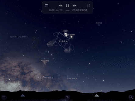 • June 23 –Face south about an hour after sunset to see the moon and Jupiter nicely paired together in the sky.